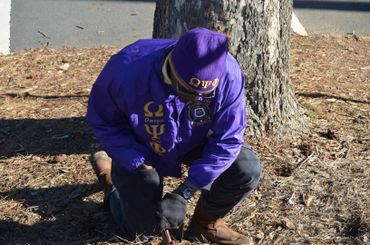 On Monday, January 18, 2016, Brothers Edward Andrews, Wayne Hartley, Kamau Hull, Quincy Wilkins, Arthur Hinton, Jr. and visiting Bro. Gregory Binns, participated in the Martin Luther King, Jr. Day of Service sponsored by Keep Athens-Clarke County Beautiful. The Brothers donated food to the Food Bank of Northeast Georgia and worked on a flower bed beautification project around the East Athens Community Center. Over 1200 flowers and 250 bulbs were planted. Bro. Hull serves as a member of the MLK Day of Service Steering Committee.